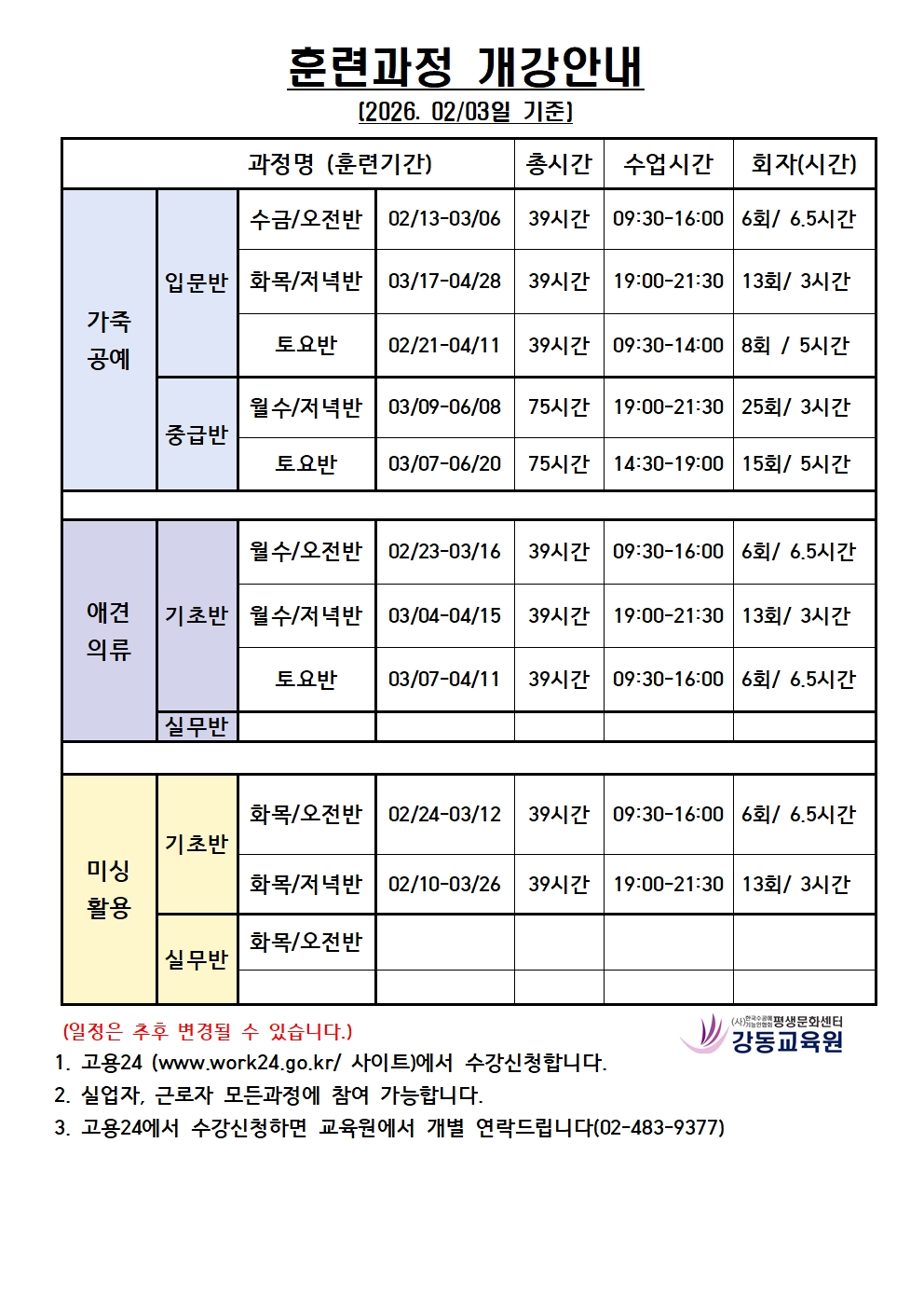 Ä«Å×°í¸® ¸ðÁýÁßÀΰúÁ¤ °úÁ¤¸í °³°¾È³» (2026.02.03ÀÏ) ±âÁØ ±â°£ 2026.02/03 - 2026.03/31 ½Ã°£ 09:30 - 21:30 ¿äÀÏ ¿ù,È,¼ö,¸ñ,±Ý,Åä, ¸ðÁýÀοø 20 Á¶È¸¼ö 99 0