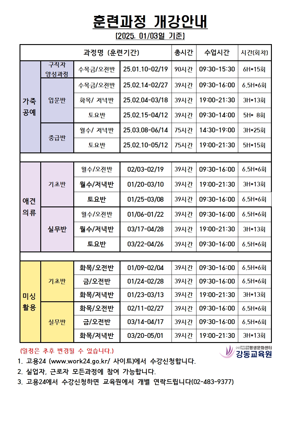 Ä«Å×°í¸® ¸ðÁýÁßÀΰúÁ¤ °úÁ¤¸í °³°¾È³» (2025³â 1¿ù 3ÀÏ) ±âÁØ ±â°£ 25.01.02 - 25.03.31 ½Ã°£ 09:30-21:30 ¿äÀÏ ¿ù,È,¼ö,¸ñ,±Ý,Åä, ¸ðÁýÀοø 20 Á¶È¸¼ö 270 0